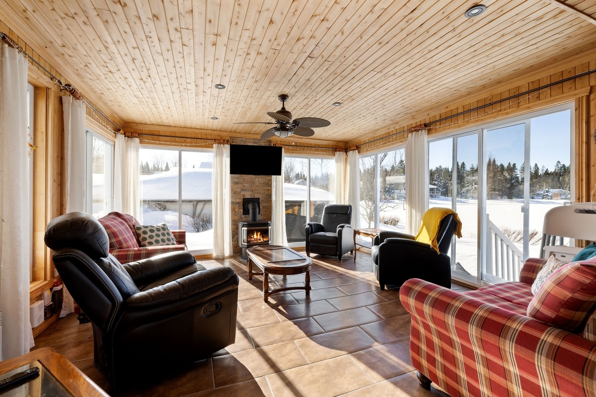 Almorza al sonido de las olas, camine por la orilla del río o admire la puesta de sol detrás de las montañas. Cuando el viento da paso a una agua tranquila un paseo en kayak o un momento de pesca le hará olvidar su día a día. Difícil estar estresado en esta calma envolvente, tome asiento en el columpio del gazebo o plante una silla en la arena a orillas del Saint-Laurent y deje que este ambiente se abrume. Ideal para parejas con posibilidad de 2 niños en el sofá cama.