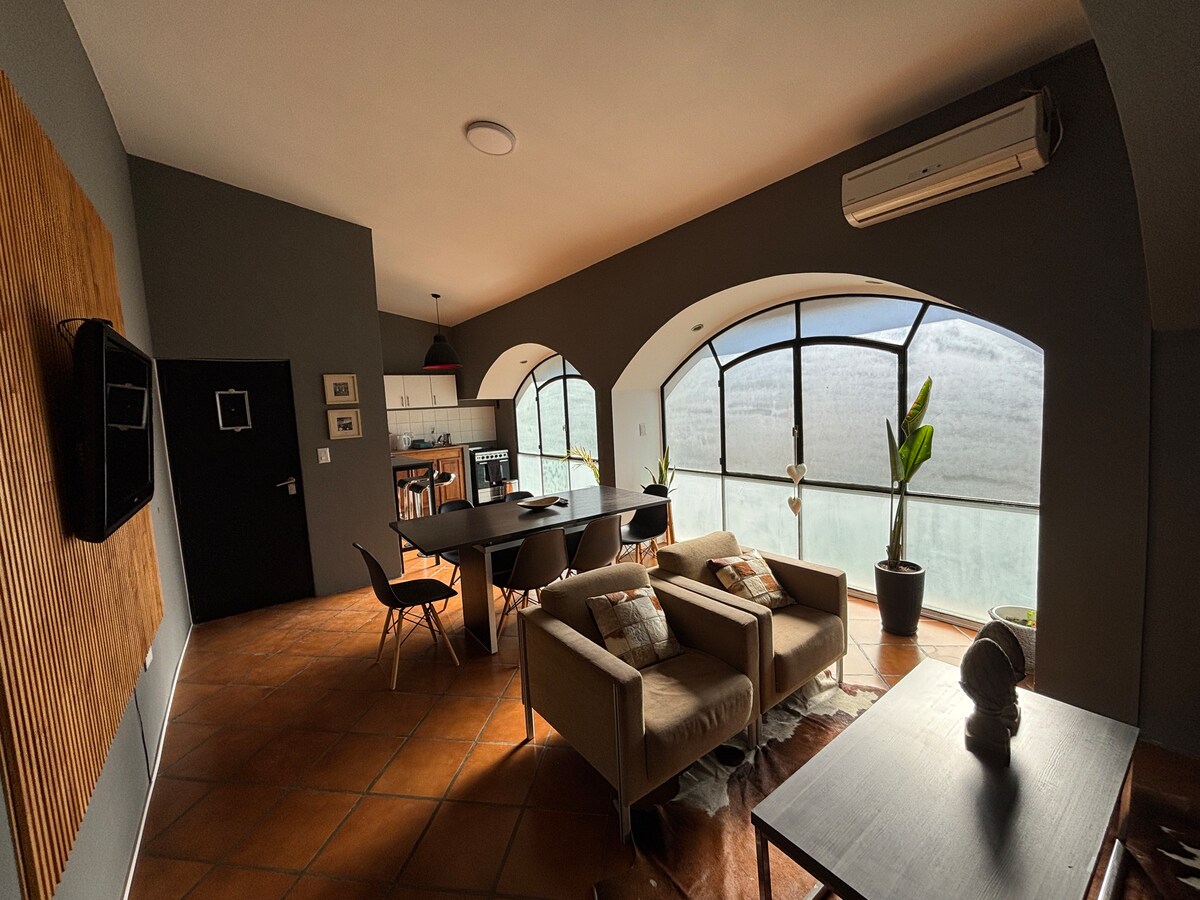 Este alojamiento único tiene personalidad propia. Studio de diseño de 50 metros cuadrados, con espacio propio para estacionar techado abierto a la calle (sin cerramiento), para vehículos de dimensiones pequeñas a medianas.