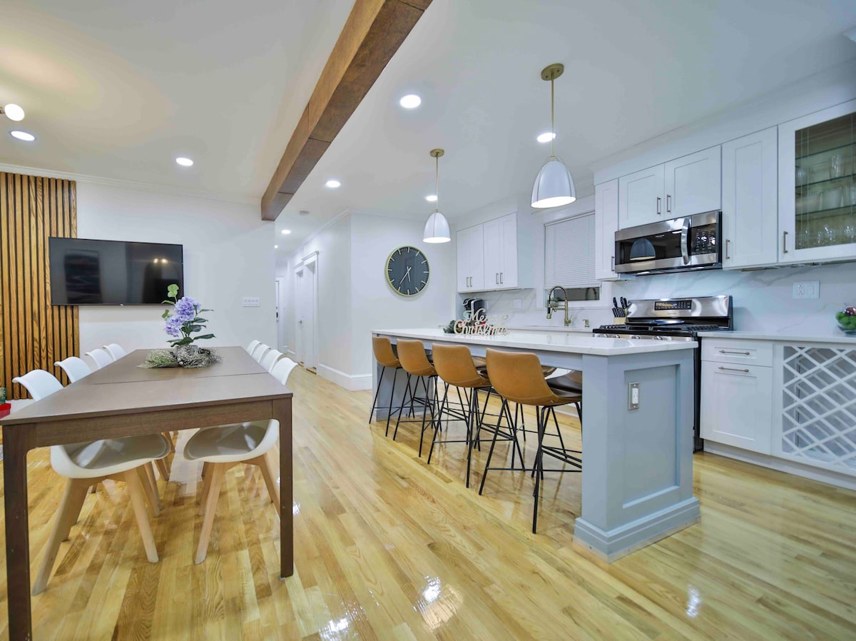 Lujo y recién reformado. Distribución de espacios abiertos. Cocina totalmente equipada. Perfecto para reuniones, estadías/grupos/familias. Camina hasta los restaurantes. Mejor calificado en limpieza. Disney+ a 3,8 millas de BCEC, centro,Fenway. A 20 minutos del casino, a 35 minutos del lugar de los Patriots. APARCAMIENTO gratuito Wifi gratis, Lavadora/Secadora gratuita a 18 minutos del aeropuerto A 12 minutos a pie del tren A 8 minutos de la playa Cerca de universidades, bares Nos encanta y esperamos poder hospedarte.