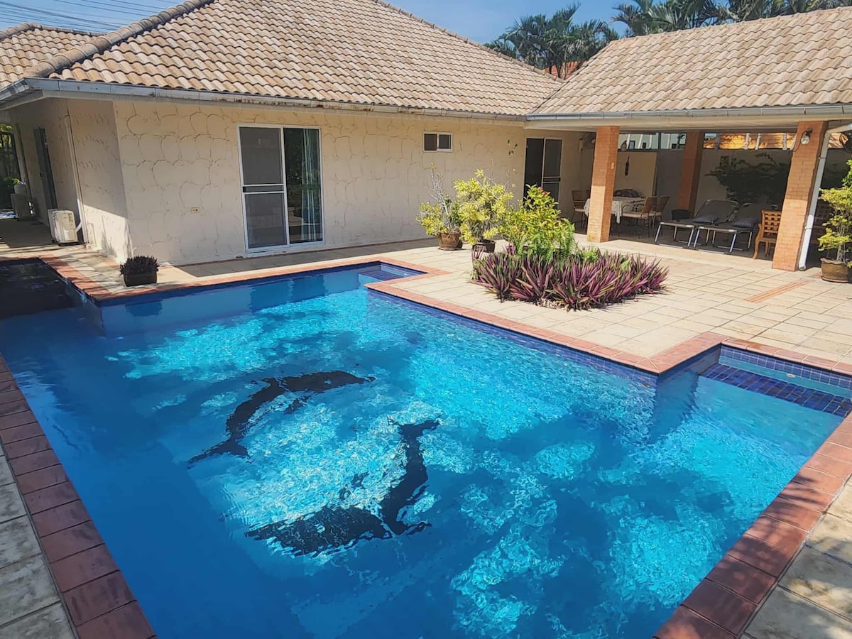 Ubicación: La villa está a 130 metros de la playa e incluye servicio de limpieza 4 veces por semana. Dolphin Bay es una bahía muy idílica situada a unos 35 km al sur de Hua Hin, en la provincia de Prachuab Kirikan. La zona es apta para familias, tranquila y con la mejor playa de la provincia y el famoso parque nacional «Sam Roi Yot». Contenido de la villa: 570 metros cuadrados en total en la sala de estar (sala de estar = área de uso interno/externo). La propiedad está rodeada por una valla/muro.