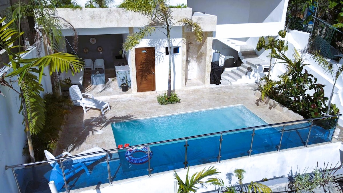 This is the ONLY house in Las Terrenas where your backyard is sand and ocean. Wake up and go to sleep to the sound of rolling waves breaking almost inside your backyard. It the most central house in town, you do not need a car, everything charming and necessary is just a (very) short walk. Oh, you even have a private ocean front plunge pool on the second floor - 100% paradise. 100% good vibes.