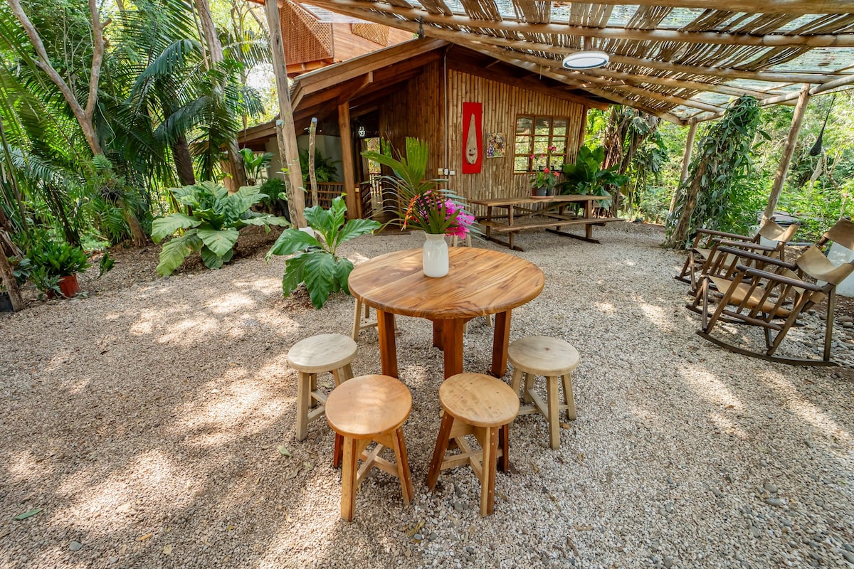 Esta encantadora y autónoma casita de playa está perfectamente ubicada a pocos pasos del corazón de Sámara y de la playa. Ideal para personas que viajan solas o en pareja, el espacio cuenta con una cómoda cama de tamaño completo, baño privado y todos los elementos esenciales. Disfruta de la comodidad del aire acondicionado, wifi, lavadora y bidé para reducir el uso de papel. La cocina totalmente equipada te permite preparar tu botín del mercado de agricultores del sábado. Después de un día de diversión bajo el sol, refréscate en la ducha al aire libre.