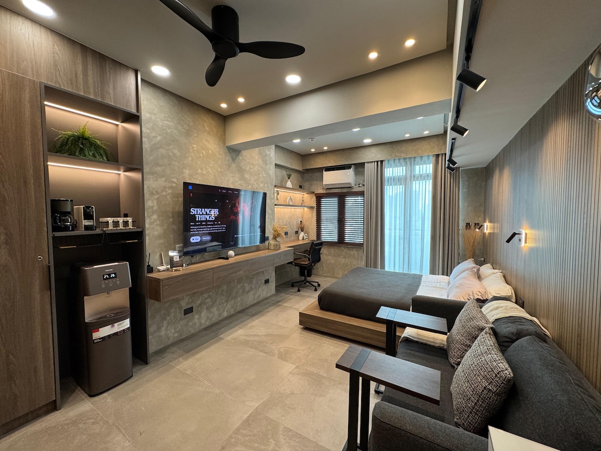 Relájate en este acogedor apartamento de 1 dormitorio en Sun Residences, QC, ideal para vacaciones, viajes de trabajo o escapadas rápidas. Disfruta de un balcón privado, una televisión inteligente de 55" y una Nintendo Switch. Toallas, kit de higiene, zapatillas, café y condimentos básicos incluidos. Acceso a la piscina y al gimnasio disponible por un cargo (150 ₱ entre semana/300 ₱ los fines de semana). Entrada: 14:00, salida: 12:00. Nota: reserva con 2 días de antelación a tu estancia.