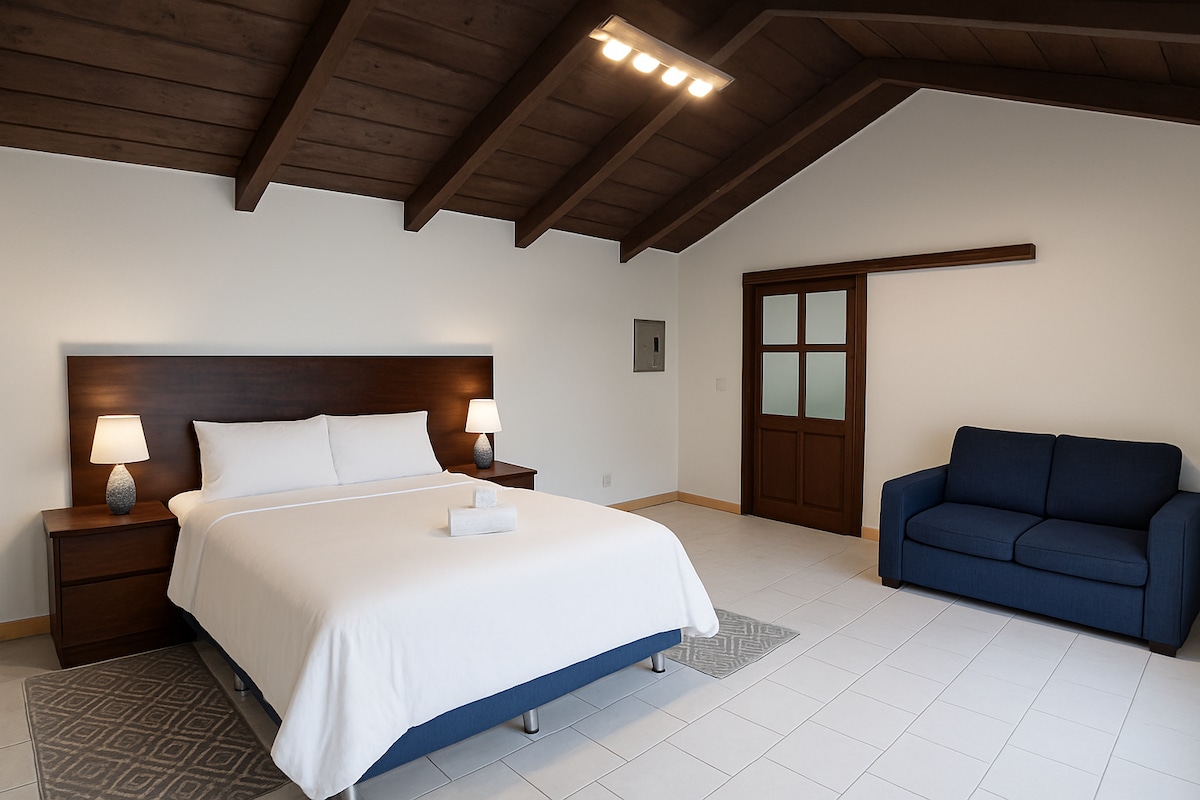 🌺 Bienvenido a Casa Flora Apt 4, alójate a solo 9 minutos del Parque Central de Antigua 🏛️ en un barrio seguro de Santa Ana🔒. Perfecto para estancias largas, Este acogedor apartamento de 1 dormitorio 🛏️ ofrece wifi fiable 📶 para trabajar a distancia💻. baño privado 🚿, cocina americana. Estacionamiento en la calle. También ofrecemos estacionamiento privado gratuito a solo 2 cuadras para 1 automóvil 🚗 Cerca de centros comerciales🛍️, cafeterías ☕y atracciones🎨. Ideal para parejas 💕, viajeros solos 🌍 o nómadas digitales 💼 que buscan comodidad y valor.