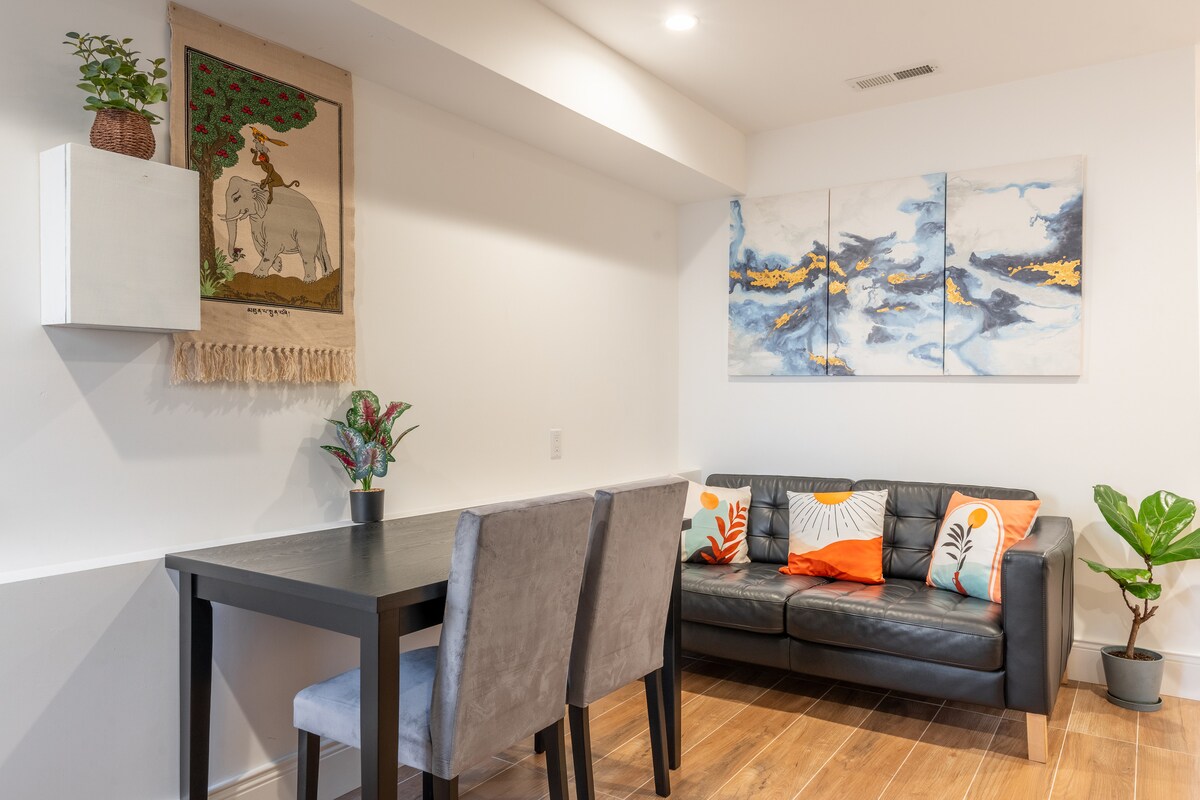 Ven a alojarte en el primer piso de nuestra hermosa casa de 3 pisos, con entrada independiente y espacio privado que incluye un dormitorio, baño, sala de estar y cocina pequeña. Además, tendrás acceso a nuestra lavandería y al jardín del patio trasero, y podrás utilizar nuestra cocina bajo petición. Ten en cuenta que, aunque tratamos de ser respetuosos con el ruido, el sonido se propaga fácilmente en nuestro alojamiento. También tenemos dos hijos y un gato, por lo que es probable que nos escuches a veces. ¡Se admiten personas de todos los orígenes!
