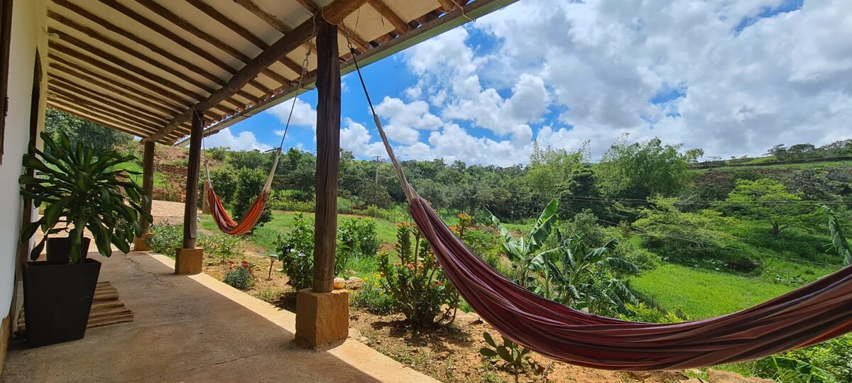 Cabaña en la naturaleza, a 5 min de Barichara. Cómoda, acogedora, romántica, iluminada y con la tranquilidad y espacio del campo. 1 dormitorios, baño privado, agua caliente, comedor al aire libre, cocina completa, barra de comedor y diferentes comedores al fresco. Restaurante de hotel a 5 min a pie. A 4 km (5 min en auto) de Barichara, Puedes llegar en auto, mototaxi desde Barichara, regularmente pasan buses a 800m de la casa. Lote 5000m2 Casa 100m2 Ideal para parejas. RNT251009