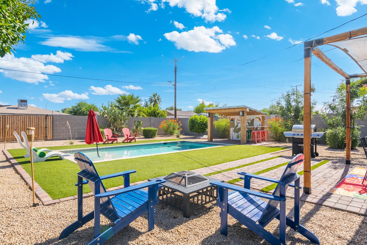 Date un chapuzón en tu propia piscina privada después de explorar el vibrante centro de Chandler, a solo una milla de distancia. ¿Por qué te va a encantar? 3 dormitorios espaciosos con dos baños grandes Cocina impecable y equipada para cocinar Wifi rápido y TV inteligente para noches de cine Asientos a la sombra en el patio trasero y barbacoa Estacionamiento gratuito en la entrada Camina 5 minutos hasta las cafeterías, cervecerías y el mercado semanal de agricultores. ¿Necesitas consejos? Soy Superanfitrión y respondo en menos de una hora. ¿Listo para el sol y la relajación? ¡Reserva tus fechas hoy mismo!