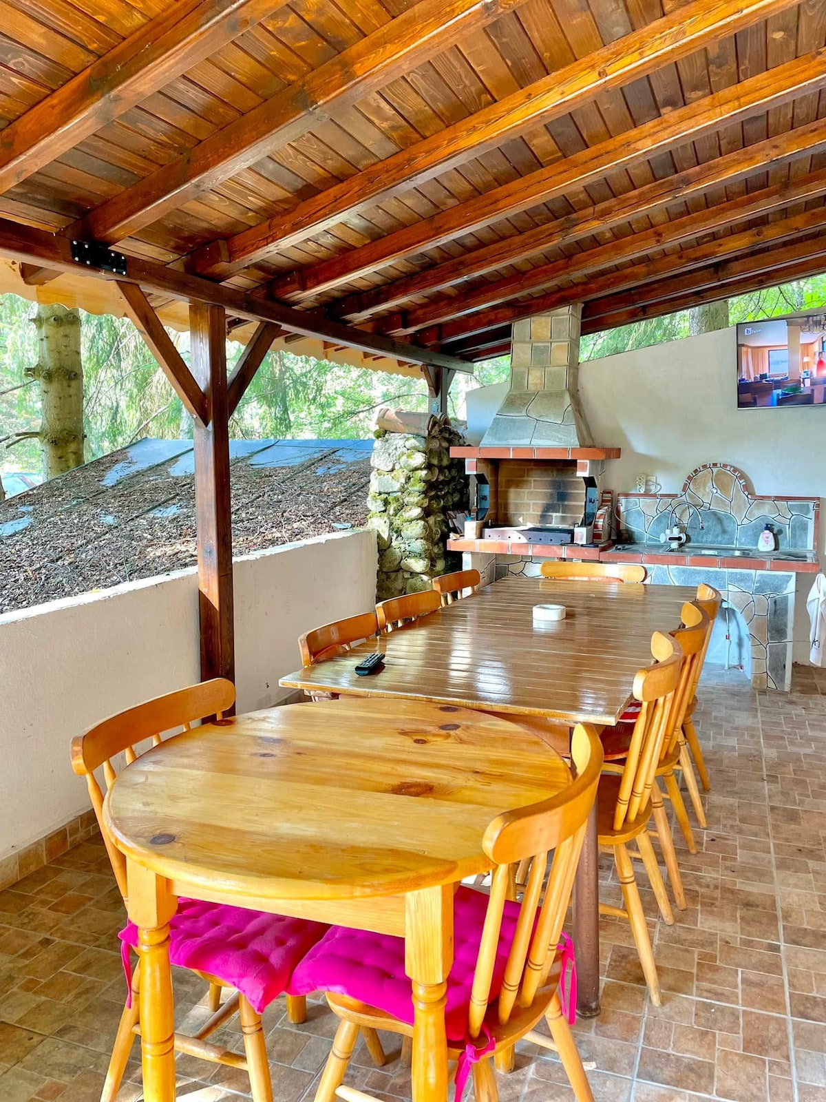 Guest House VALERIE da la bienvenida a sus huéspedes en la ciudad Pirin de Kresna, ubicada a lo largo del río Struma a través de la pintoresca garganta de Kresna. Está amueblado con buen gusto y crea una sensación de comodidad y calidez. Hay 5 dormitorios, una sala de estar, una taberna, una piscina, una sauna, un gimnasio y un espacioso patio con una barbacoa. Tus vacaciones con nosotros serán inolvidables, porque además de la comodidad y la tranquilidad, el aire fresco y la increíble naturaleza de Pirin también puedes visitar Sandanski, Melnik, Monasterio Rozhen, Rupite, Reverend Stoyna.