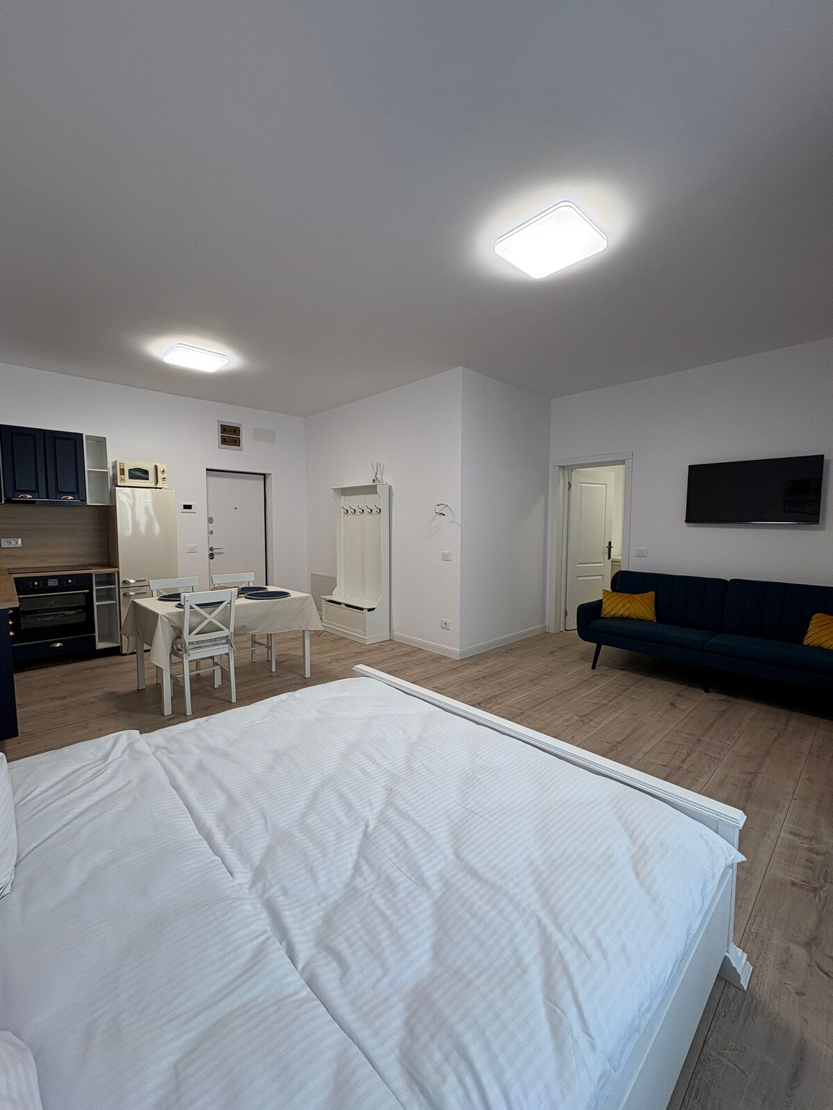 ¿Quieres una ubicación tranquila cerca de la relajación? El apartamento Radiana tiene capacidad para un máximo de 5 personas, en un ambiente familiar, a solo 2 minutos del presidente de Aqua Park, tiene un dormitorio y una sala de estar, ¡equipado con una cama tamaño king y un sofá cama! La cocina es exactamente lo que te gustaría: platos completos, cubiertos, cubiertos, electrodomésticos (estufa eléctrica, placa eléctrica, horno, microondas, cafetera, tostadora, hervidor de agua). Y el baño es superior, ¡tenemos algunas fotos a continuación!