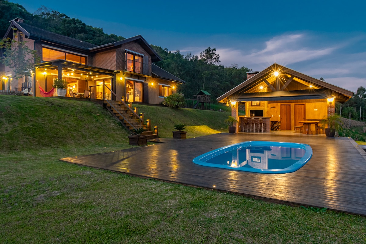 Estamos ubicados en el interior de Nova Petrópolis, en un pueblo bucólico llamado Nove Colônias, a 15 minutos del centro. Nuestro chalet fue construido íntegramente con madera nativa de pino araucaria, proporcionando calidez y comodidad a nuestros huéspedes. La casa está equipada con bañera de hidromasaje con vistas panorámicas, chimenea, aire acondicionado, smart TV con 130 canales, wifi (fibra óptica), cocina completa, así como terraza con hamacas y vistas al valle.