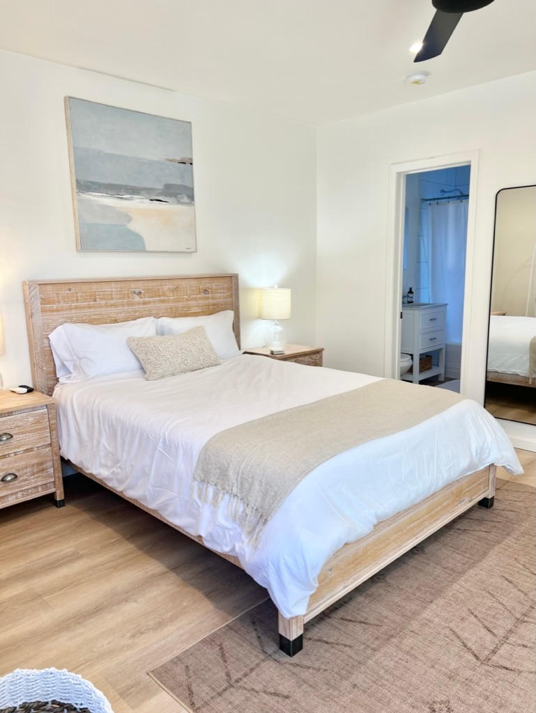 Atraviesa las puertas del carruaje y entra en un interior abierto con suelos de hormigón pulido, además de una cocina con armarios azul marino y encimeras de piedra. El dormitorio cuenta con puerta de granero, suelos de bambú y TV de alta definición de 55 pulgadas, mientras que un jardín verde te espera en el exterior. Entra en la casa de huéspedes a través de las puertas del carruaje hasta un espacio abierto en el primer piso con cocina, sofá y TV de pantalla plana de alta definición de 60 pulgadas. Suelos de hormigón pulido y encimeras de piedra. Salida a una escalera exterior abierta que conduce a un dormitorio superior con cama tamaño king, suelos de bambú, cómoda, TV HD de 55 pulgadas, baño cómodo con ducha a ras de suelo y tocador. Wifi/cable/unidades de aire acondicionado y calefacción en cada habitación. El diseño es una mezcla de casa de playa con toques contemporáneos. A 2 manzanas de la hermosa Ocean Avenue para ver las hermosas puestas de sol de California o caminar hasta la playa. A 2 manzanas de las tiendas y cafeterías de Montana Avenue. Cerca de Promenade y Metrolink. ¡Ubicación inmejorable! Nuestro alojamiento es ideal para parejas, aventureros solitarios y viajeros de negocios. El bungalow es una casa de huéspedes separada, pero los propietarios están presentes en la propiedad en la casa principal. La mesa exterior con un banco y sillas está perfectamente situada para el café de la mañana, el almuerzo o el cóctel de la noche. Vivimos en la casa de enfrente, así que no dudes en ponerte en contacto con nosotros si tienes alguna pregunta o inquietud con respecto a tu estancia. Deja el coche atrás: la playa, los restaurantes, las cafeterías y las tiendas están a poca distancia a pie. Alquila una bicicleta cerca para explorar más. Contempla la puesta de sol sobre el agua desde Ocean Avenue, a 2 manzanas de distancia, mientras que Metrolink y Promenade también están cerca. Alquila una bicicleta Hulu para tu estancia. «El 12 de mayo de 2015, el Ayuntamiento de Santa Mónica adoptó la Ordenanza de uso compartido de viviendas reiterando su prohibición de alquilar unidades enteras como alquileres vacacionales. La Ordenanza de uso compartido de viviendas también legalizó el alquiler a corto plazo de una parte de la vivienda de una persona cuando el anfitrión vive en el lugar durante la estancia del visitante y cuando el anfitrión obtiene una licencia comercial. Los anfitriones también están obligados a recaudar y remitir el Impuesto sobre Alojamientos Temporales (TOT, por sus siglas en inglés) si la plataforma de alojamiento no lo hace». Nuestra licencia n.º 221557 está registrada en el Ayuntamiento de Santa Mónica.