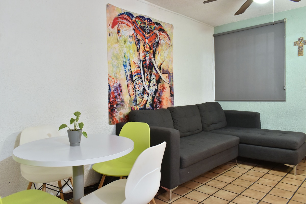 Disponible estancias largas. **FACTURACION DE HOSPEDAJE ** Facturacion timbrada por el SAT 12 km. del aeropuerto. Segundo nivel 3 recámaras individuales, más 1 recámara doble única con minisplit. Todas con clóset, escritorio, Wi-Fi y abanico de techo y pedestal en todas las habitaciones de la casa, 3 baños completos y 1 visita. En el primer nivel recámara principal con 2 camas individualesl, baño privado y Minisplit. Sala sofá cama, lavanderia techada cochera s/ r.