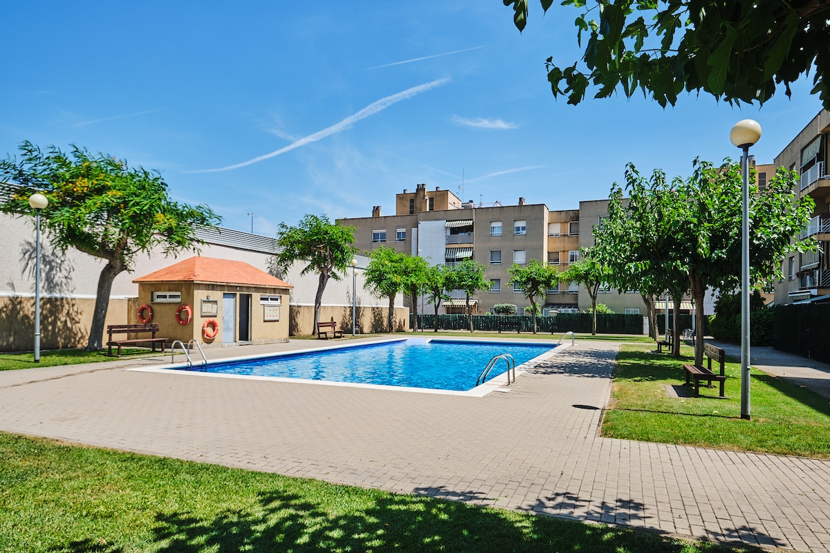 Especialmente diseñado para Empresas y familias. No grupos de amigos. Alquilamos nuestro precioso, muy limpio y funcional apartamento de 4 habitaciones con piscina recién reformado en la mejor zona de Barbera del Valles. WIFI 1GB! 3 Smart TV. Con parking bajo petición. Electrodomésticos y mobiliario son nuevos, menaje completo. Ubicado a 15 min de Barcelona y playa en coche. En una zona llena de servicios, comodidades y muy fácil acceso en coche. Piscina abierta de junio a septiembre incluidos