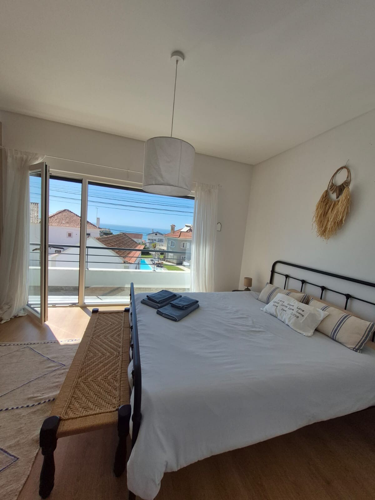 Exclusive villa with breathtaking ocean view, complete with: 1) private pool, 2) living room opening up to a terrace overlooking the sea, with dining table, lounge area and hammock, 3) 4 bedrooms, 4) 3 bathrooms and 5) spacious kitchen. Located in gated estate with tennis court, football field, and several gardens. Walking distance to several beaches, surf spots, town center and other services. Includes welcome basket with local products, and a Ericeira guide with special tips.