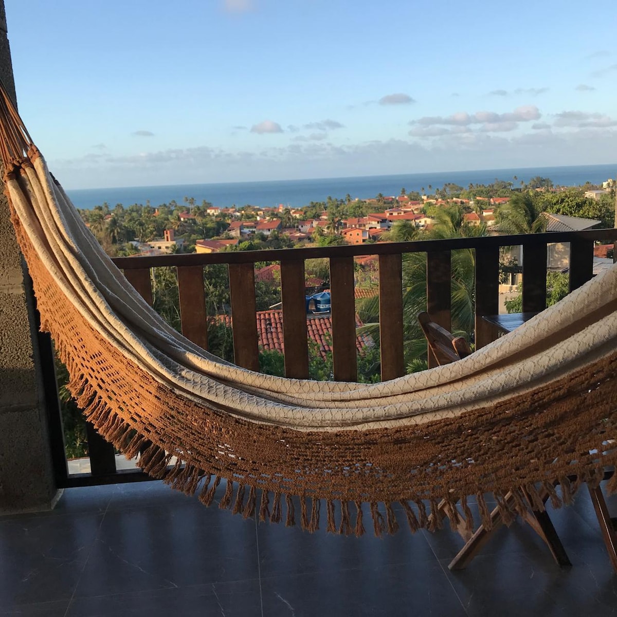 Relájese en una cabaña que se encuentra a menos de 150 metros de la playa de Taibinha. Duerme un sueño tranquilo escuchando el sonido del mar, pero en el frío del aire acondicionado y recupera tu energía, ¡porque aquí hay olas todos los días, hay lagos para navegar, paseos en cuatriciclos, cuevas y playas paradisíacas! La cama doble está en el entrepiso de la cabaña, con vistas al mar 🏝️☀️ Tenemos cocina completa con nevera, estufa y accesorios. Todavía tiene la azotea (lugar común con los otros chalets) con vista panorámica de la playa.