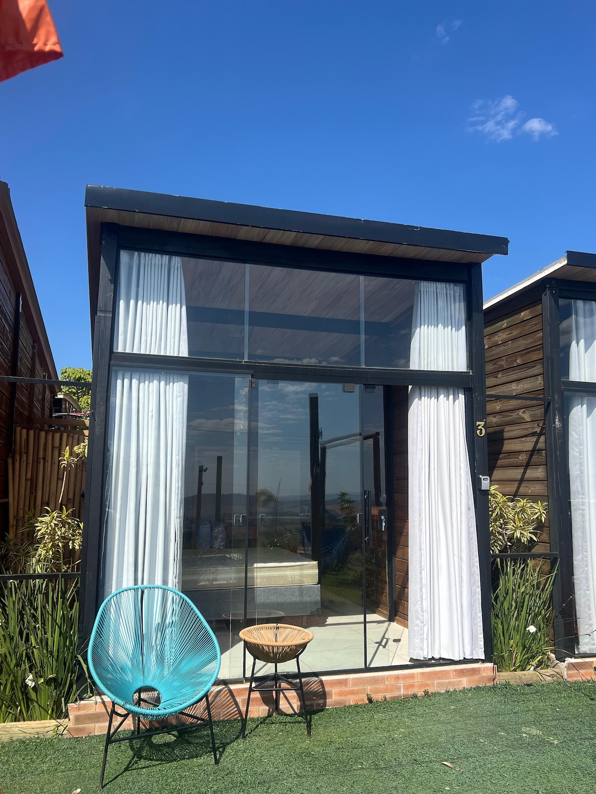 Relájate y disfruta de la Serra da Canastra (Delfinópolis, cerca de Babilonia) en este chalet acogedor, tranquilo y ecológico, construido en seco, con comodidad termal y abastecido con energía limpia. Tiene vistas espectaculares de la cascada, las montañas, el valle y el Río Grande. Disfruta del cielo en la terraza o rompe senderos, cañones y cascadas en la propiedad. Hay más de 10 en Complexo Cachoeiras Santa Maria y Cachoeiras do Freud* (*senderos en construcción, entrada solo con la ayuda de un guía).