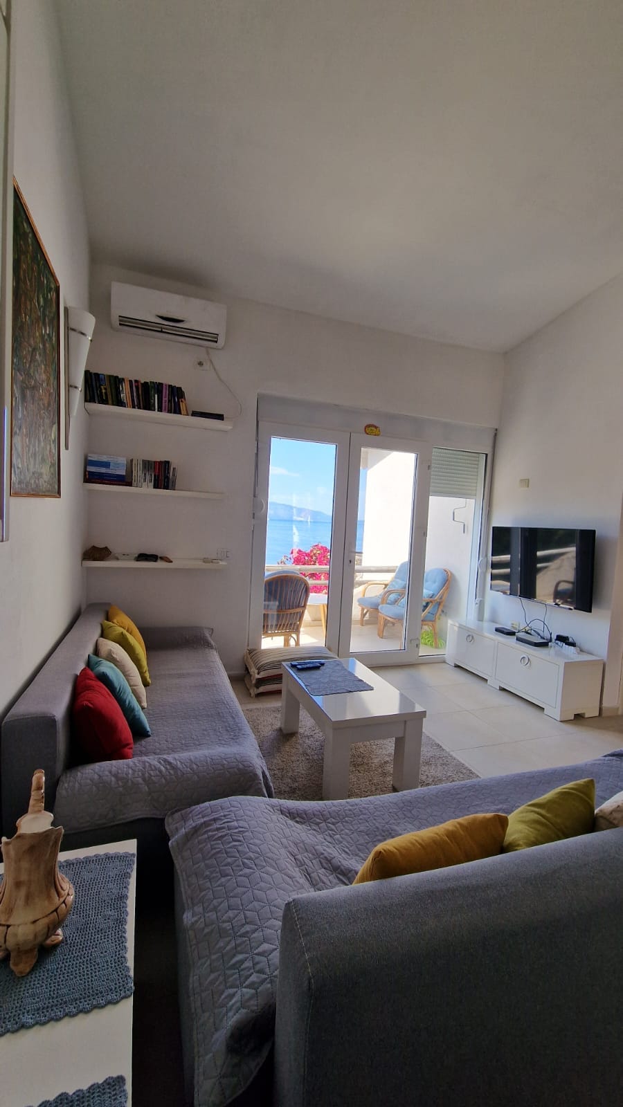 Experimenta el encanto de Sarandë desde nuestro elegante refugio familiar, donde convergen las vistas panorámicas al mar y el encanto moderno. Nuestro espacio cuidadosamente seleccionado te invita a relajarte con estilo, mezclando la comodidad con la elegancia costera. Empápate de la magia de Sarandë, donde cada momento familiar es un recuerdo. Nuestro apartamento forma parte del Bougainville Bay Resort, donde te esperan impresionantes y únicas vistas panorámicas del mar Jónico desde el balcón y los servicios del centro vacacional.