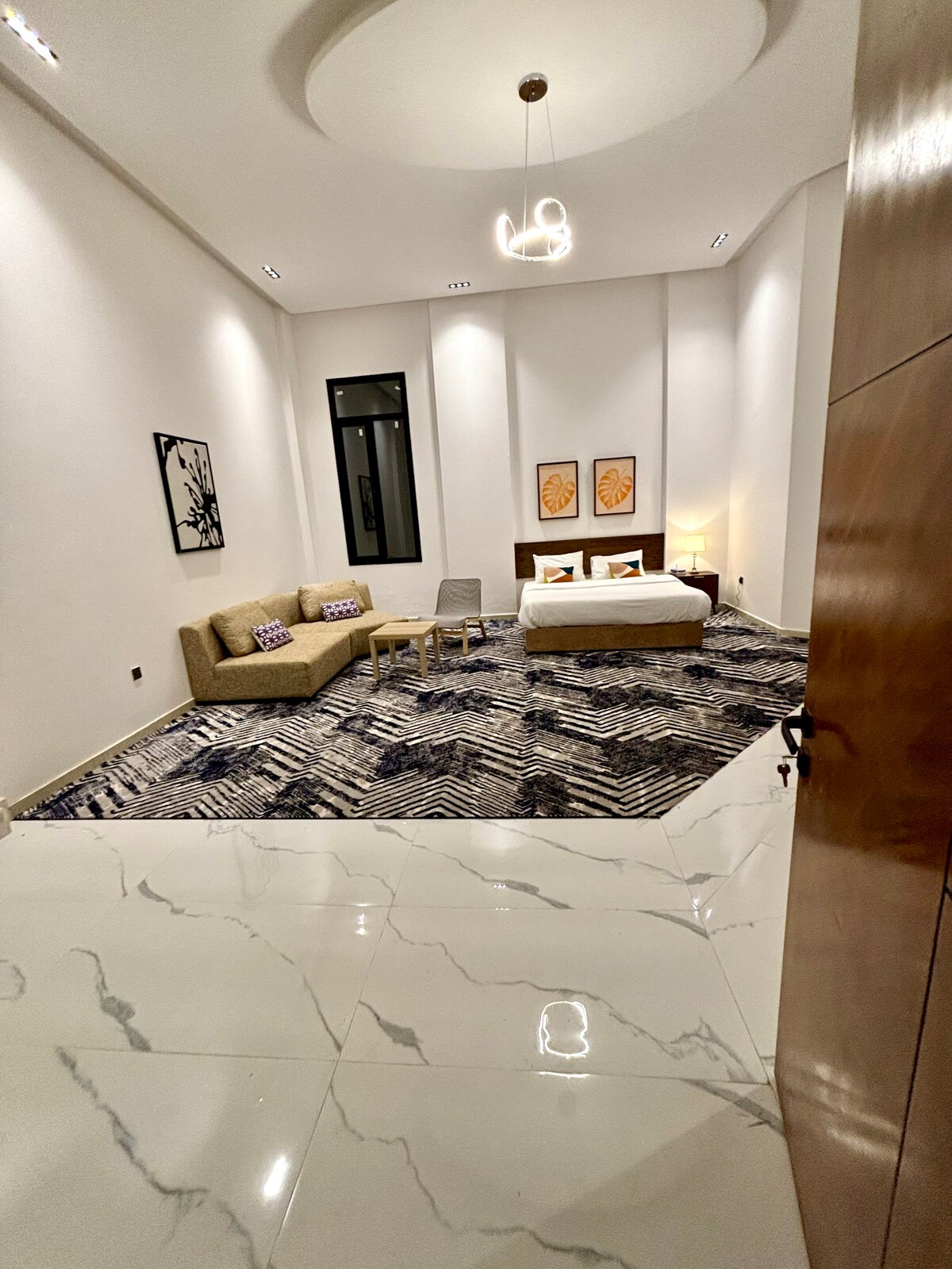 ¿Buscas comodidad, comodidad y una ubicación perfecta? Esta casa impecable de nueva construcción sería tu mejor opción. El departamento se encuentra en una ubicación privilegiada en el norte de Riad, con fácil acceso al aeropuerto, los centros comerciales y las atracciones de Riad. Este apartamento recién amueblado consta de un acogedor estudio en la azotea, una cocina bien equipada, un cómodo sofá y un gran baño, también un pequeño jardín.