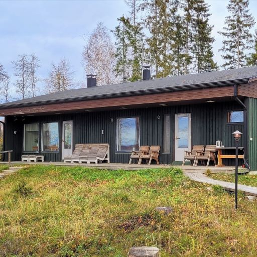 Un conjunto en la orilla de la impresionante Puruvesi, que incluye una espaciosa villa de madera, una sauna, un almacén, una cabaña de troncos (casa), su propia tranquilidad y sus propias playas de arena privada con grandes muelles. La villa tiene 2 plantas, salón, comedor, cocina, 2 dormitorios, aseo, baño con ducha, sauna eléctrica, aseo y lavabo, así como secadora. En la planta superior hay un espacio de trabajo y un sofá cama. La sauna tiene una estufa de leña, y la habitación tiene un sofá cama y muebles de cabaña. Junto al almacén, hay un pequeño espacio de alojamiento con una litera.