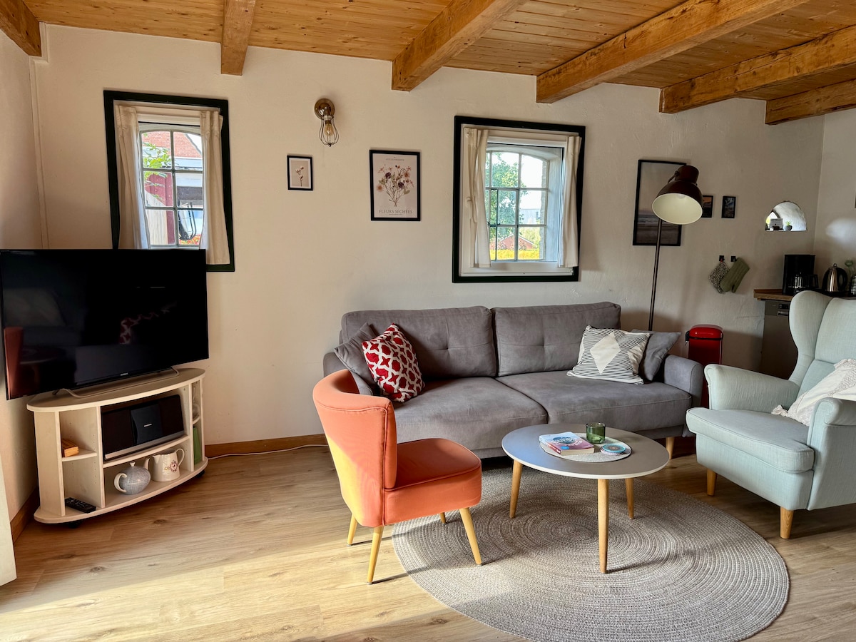 Die Appartements liegen im Erdgeschoss der altern Scheune. Sie sind mit einer Küchenzeile, Eingangsflur und Duschbad ausgestattet und ca. 35 qm groß. Der Schlafbereich ist vom Wohnbereich durch Jalousien getrennt. Die breite Fensterfront sorgt für eine helle und erholsame Atmosphäre. Den Blick auf die Marschwiesen und den Ortskern im weiten Hintergrund werden Sie lieben lernen. Sie können durch zwei Flügeltüren nach draußen treten und vor dem Appartement im Garten Frühstücken!