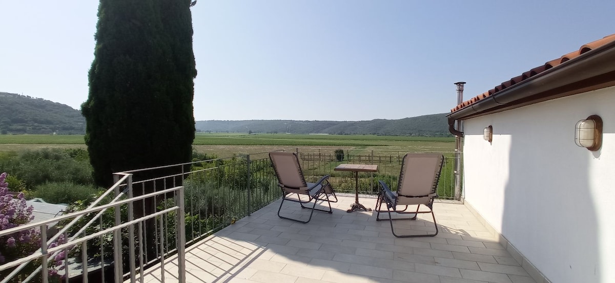 Perfecto para parejas, viajeros solitarios y familias pequeñas. Un lugar muy tranquilo apto para trabajar con Internet nómada, rápido. Tienes una vista encantadora del valle desde tu ventana, un acogedor comedor y sala de estar con la cocina pequeña, toda la comodidad para tomar tu café de la mañana o una buena comida con una copa de vino en tu propia privacidad . Impresionantes vistas de la costa eslovena, olivares y viñedos en el camino a casa. A 2 km del océano, agradables paseos y ciclismo cerca. Impuesto turístico de 2E p/pax