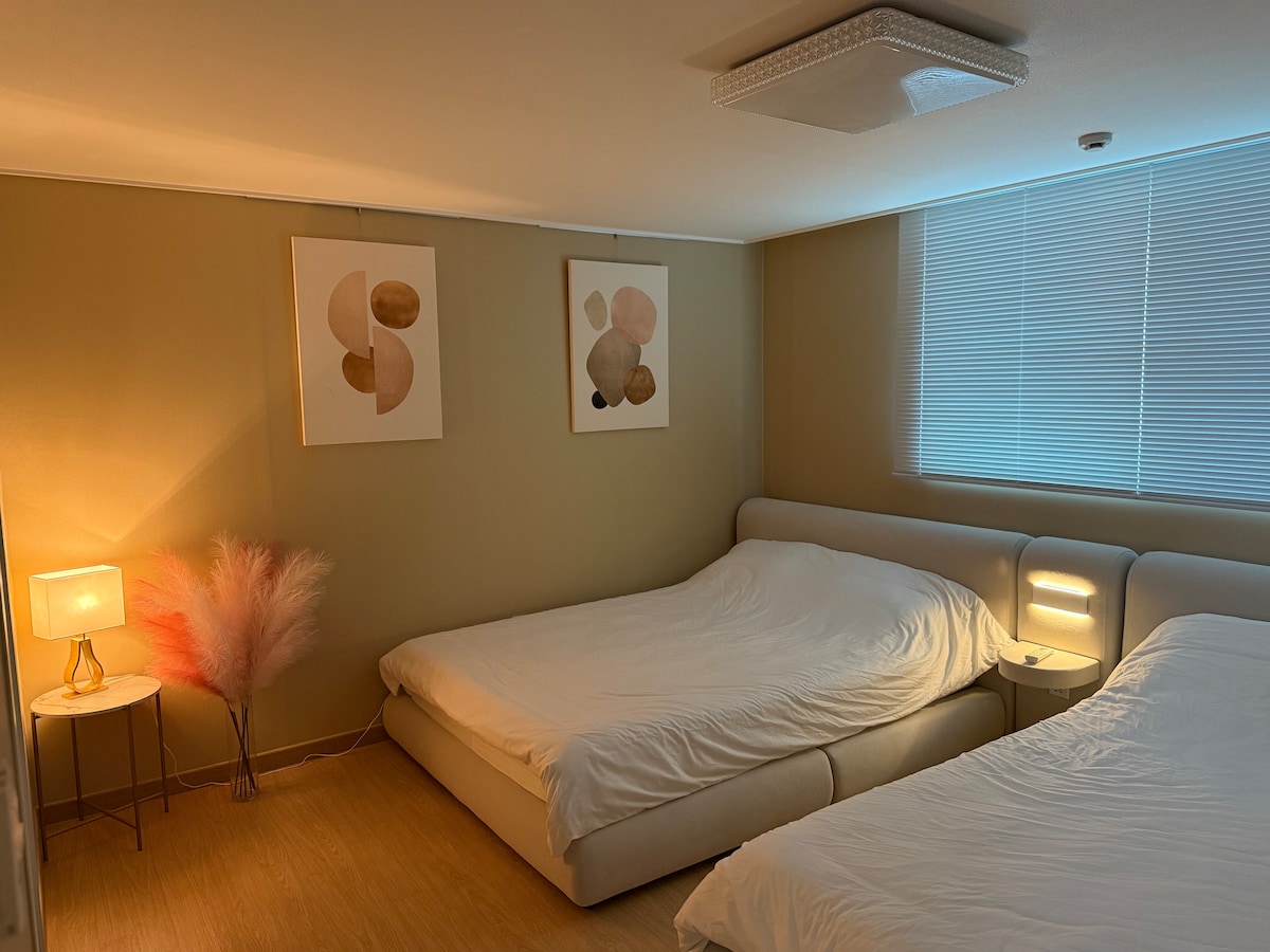 Complejo Terminal 5 minutos Alojamiento emocional Estancia acogedora Se compone de 2 habitaciones/1 baño/cocina/salón Se puede utilizar la ropa de cama del hotel para dormir cómodamente. - A 5 minutos a pie del Complejo Terminal/9 minutos en coche de la estación de Daejeon - La ropa de cama se cambia todos los días. - Instalado el último purificador de agua. - El baño está abastecido con champú, acondicionador, gel de baño, toallas, cepillo de dientes, pasta de dientes, espuma limpiadora, secador de pelo de alta calidad y plancha rizadora. - La cocina está equipada con nevera, horno microondas, cafetera, café, agua, tabla de cortar, vajilla, copas de vino, etc. - Sala de estar (TV por Internet), dormitorio (haz nuevo/Netflix gratuito disponible) - Estacionamiento gratuito disponible frente al alojamiento. - Habitación 1: cama tamaño queen baja, 1 mesa auxiliar, 1 secadora - Habitación 2: cama baja tamaño queen, 1 mesa auxiliar - Este es un edificio nuevo con ascensor. [Precauciones] Llegada: 4:00 p. m. Salida: 12:00 (Si cambias la hora de llegada/salida, avísanos con anticipación) Está prohibido fumar en el alojamiento.