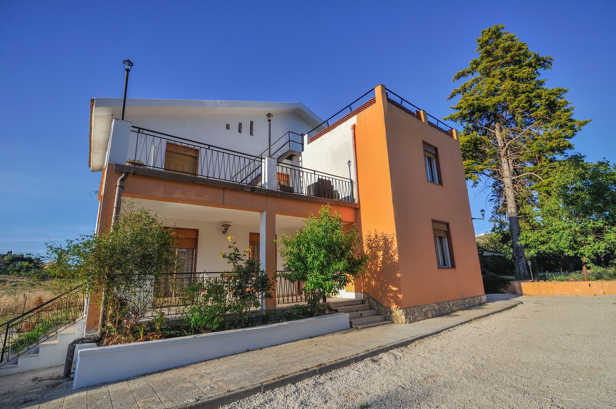 El alojamiento se encuentra en una típica colina siciliana con vistas a miles de hectáreas cultivadas en gran parte con huertos y viñedos que se extienden por dos provincias en el corazón de Sicilia y se encuentra a 600 metros del centro habitado. Forma parte de una antigua casa de campo reformada donde viven los propietarios. La villa se encuentra no muy lejos del Valle de los Templos (30 km), del mar de Licata (38 km), de la Villa del Casale de Piazza Armerina (70 km) y del espléndido acantilado de Scala dei Turchi.