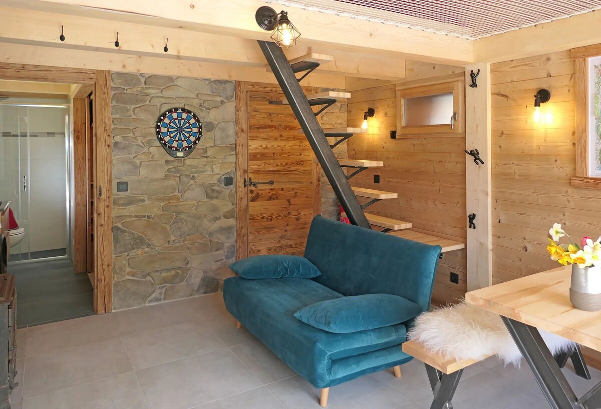 En el corazón del macizo de los Aravis, el chalet «la cabane d'Ernestine» es un lugar cálido para dos personas, al borde del bosque, con unas vistas impresionantes del valle. Ambiente acogedor garantizado gracias a la estufa eléctrica con efecto de madera, ¡todo el encanto de una chimenea sin restricciones y segura! Auténtica decoración saboyana, tranquilidad, senderismo y esquí (La Clusaz, Le Grand-Bornand): una estancia ideal para recargar energías tanto en verano como en invierno.