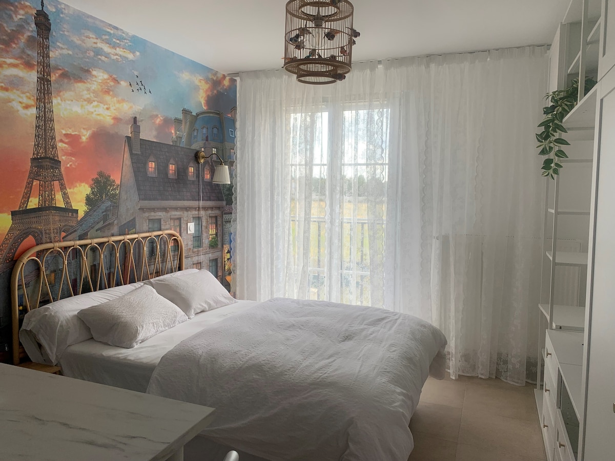 Welcome to Casa Mediterranéa ! A bright and spacious sunny apartment with a unique view above the Vallée Village mall. Perfect for families and friends, it features : - King bedroom with wardrobe - Twin bedroom with wardrobe - Spacious lounge with convertible sofa - Full kitchen and amenities such as, desk, Wi-Fi, Netflix, doble terrasse and indoor parking. All you wish for is accessible by walk : Train Station, outlets, restaurants and parks. Enjoy your magical and relaxing stay!