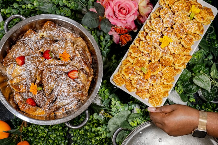 Disfruta de una experiencia de brunch única y lujosa en la comodidad de tu casa de alquiler. Relájate y disfruta del momento, sin los inconvenientes de salir a cenar. Mientras recibes a tus invitados, yo me encargaré de la comida. Elige 1 aperitivo, 1 bebida y 3 platos principales de nuestro menú de brunch. La disposición es elegante, estilo bufé, con la cantidad justa para cada invitado. No olvide preguntar por nuestras excepcionales opciones de menú para la cena, también disponibles.