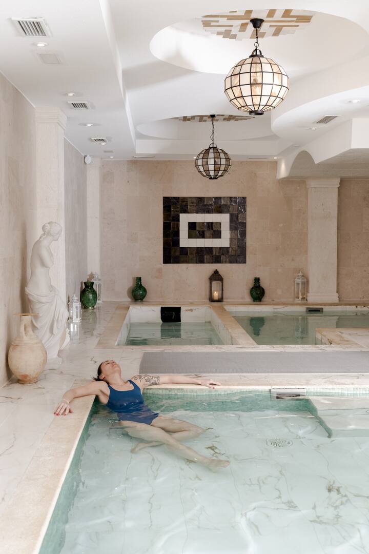 Disfruta de un circuito termal con tres piscinas a diferentes temperaturas, una sala de vapor, masajes relajantes o exfoliación.