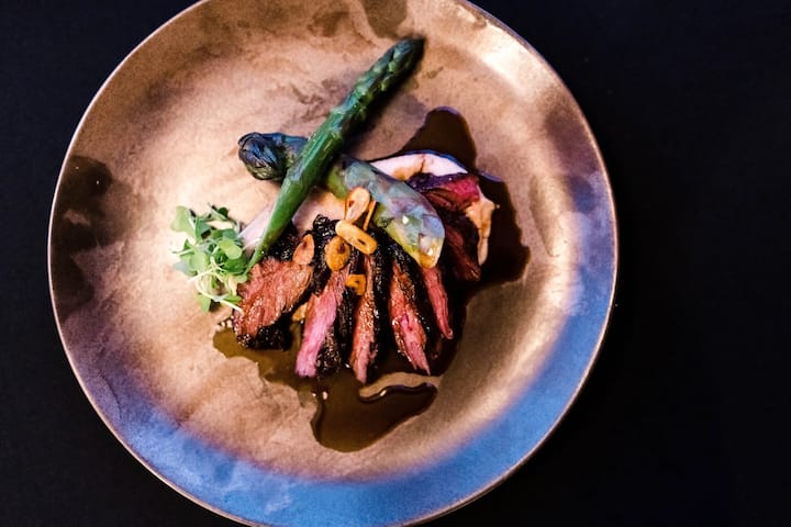 Un menú refinado de inspiración sureña con productos frescos y carnes y pescados perfectamente preparados.