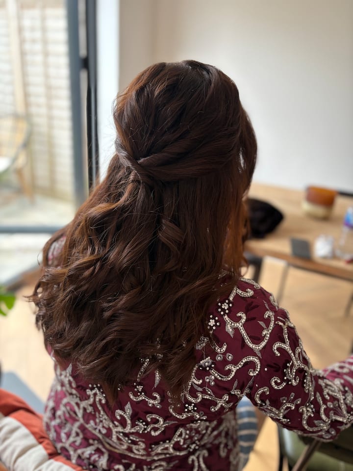 Consigue un peinado elegante o un estilo medio recogido, medio suelto, perfecto para ocasiones especiales. Este servicio incluye peinado en seco sobre cabello prelavado y seco, e incluye rizar, alisar y peinar para conseguir un aspecto pulido o romántico.