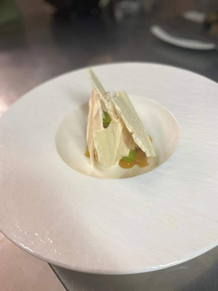 Un viaje culinario vegetal con un entrante rico en hummus y verduras, un delicado primer plato de cappelletti con berenjenas, un picante plato principal de coliflor al curry verde y un cremoso postre de mousse de yogur de cabra con miel y polen.