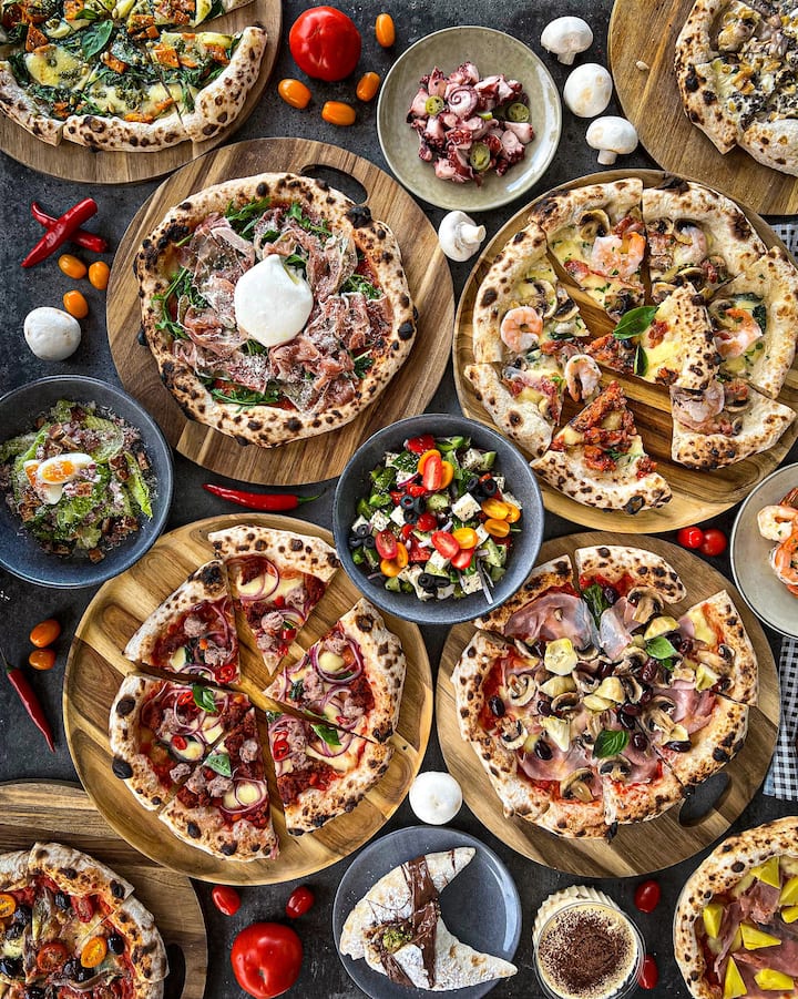 Disfruta de una experiencia culinaria única con pizzas gourmet y productos de la región de los Abruzos.