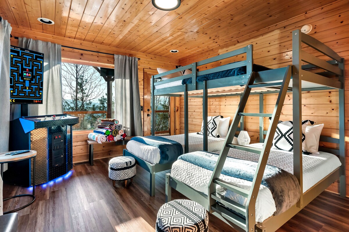 🏔¡Las mejores vistas de los Smokies!🌄 Cabaña de madera de ⭑2000 pies cuadrados ⭑nueva bañera de hidromasaje Loft de⭑ 3 dormitorios y ⭑3 baños Sala ⭑de juegos a ⭑3 millas de Dollywood Televisores ⭑inteligentes⭑ Wide Paved Roads ⭑Mesa de ⭑billar de juegos Arcade-60 + Gimnasio ⭑compartido de hockey de⭑ aire ⭑⭑Lavadora y secadora de llegada autónoma. Piscina ⭑comunitaria ⭑3 con baño King Bdr (del 15 de mayo al 15 de septiembre) ⭑Litera Guía ⭑digital ⭑Wifi