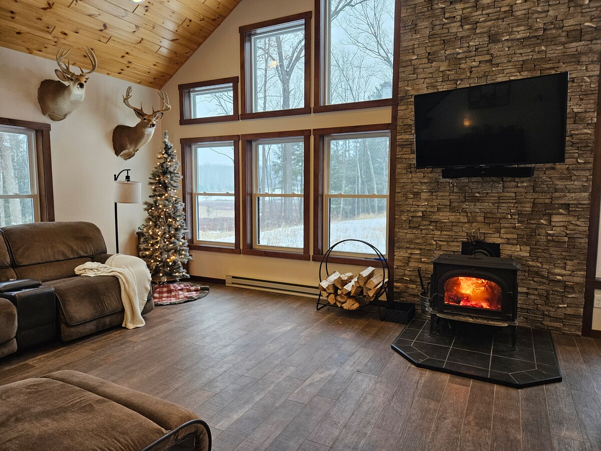 ¡Te damos la bienvenida a The Nut House! Desde los rústicos suelos de madera dura hasta las escaleras de troncos, vigas, techos de pino nudoso y la antigua bañera con patas, sentirás el encanto de los bosques del norte en el momento en que entres por la puerta principal de nuestra pintoresca cabaña de troncos de dos dormitorios. Situada en una tranquila carretera urbana (ATV-legal) y enclavada en un terreno boscoso de siete acres, la vida silvestre abunda. La sala de estar de concepto abierto con amplios asientos, comedor y asientos en la isla de la cocina ofrecen mucho espacio. ¡A solo 40 minutos de Lambeau!