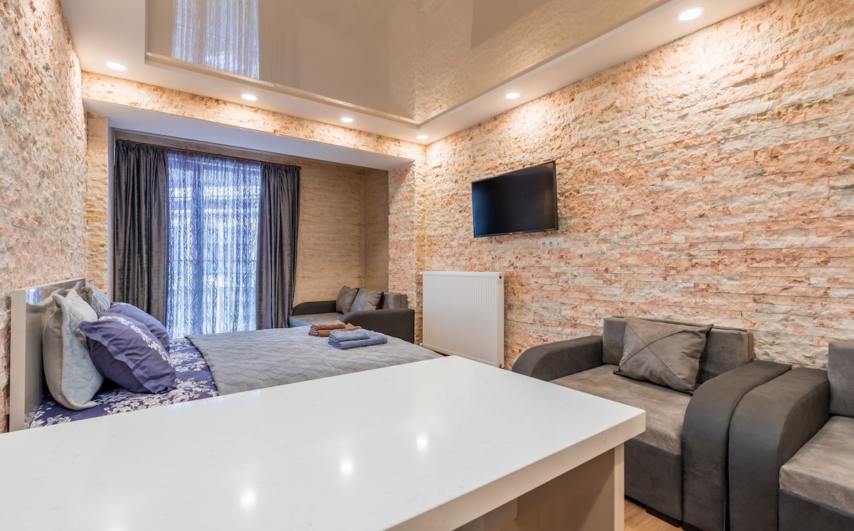 - El apartamento se encuentra en Gudauri, a pocos pasos de la zona de esquí. - El apartamento es un lugar acogedor, desde el balcón verás una hermosa vista de las montañas. - ¡El apartamento es perfecto para grupos pequeños de amigos, familias y parejas que aman el esquí, las montañas y la hermosa naturaleza! Este moderno estudio cuenta con una pequeña cocina con todos los servicios , pantalla plana y baño privado con ducha. - El apartamento cuenta con estación de esquí privada - El apartamento tiene una cama doble y un sofá cama. - Registro autónomo ( caja de seguridad).