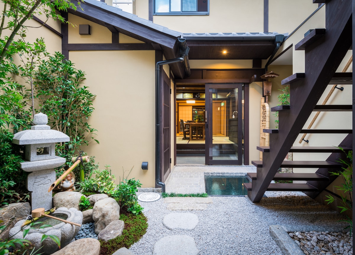 Nuestra propiedad histórica, ubicada en el centro, ofrece un refugio tranquilo a pocos minutos de las estaciones de Kioto y Gojo. Te cautivará el impresionante jardín de 150 años de antigüedad que realza el encanto de la casa. Nuestra Machiya, registrada como un importante activo histórico, ha sido cuidadosamente renovada por arquitectos galardonados y modernizada con lujosas comodidades, como aislamiento, calefacción por suelo radiante y ventanas de doble panel, lo que garantiza tu comodidad durante toda tu estancia.
