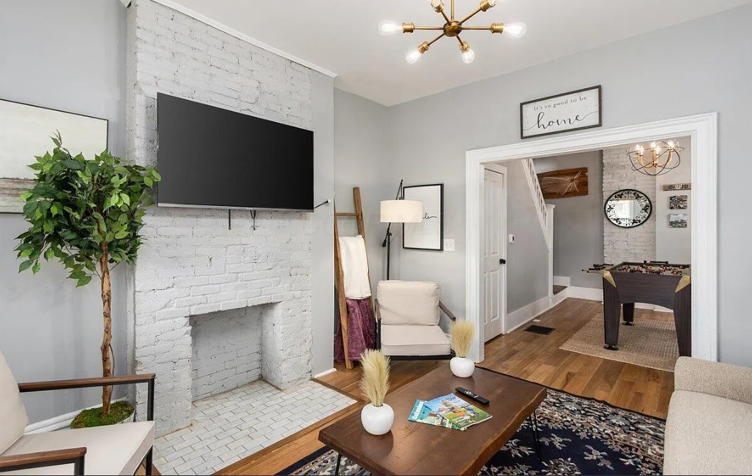 Nuestro Boutique Luxury Brownstown ofrece a los huéspedes comodidades y estilo de primera clase, a una manzana de High Street y del corazón del Short North con restaurantes, tiendas y bares. Renovado en 2022, el espacio cuenta con suelos de madera originales y restaurados con una hermosa escalera, acabados de cocina de alta gama con encimeras de cuarzo y dos baños privados con azulejos modernos y duchas de gran tamaño con asientos tipo banco. Si buscas una experiencia boutique, no hay nada mejor en Columbus.