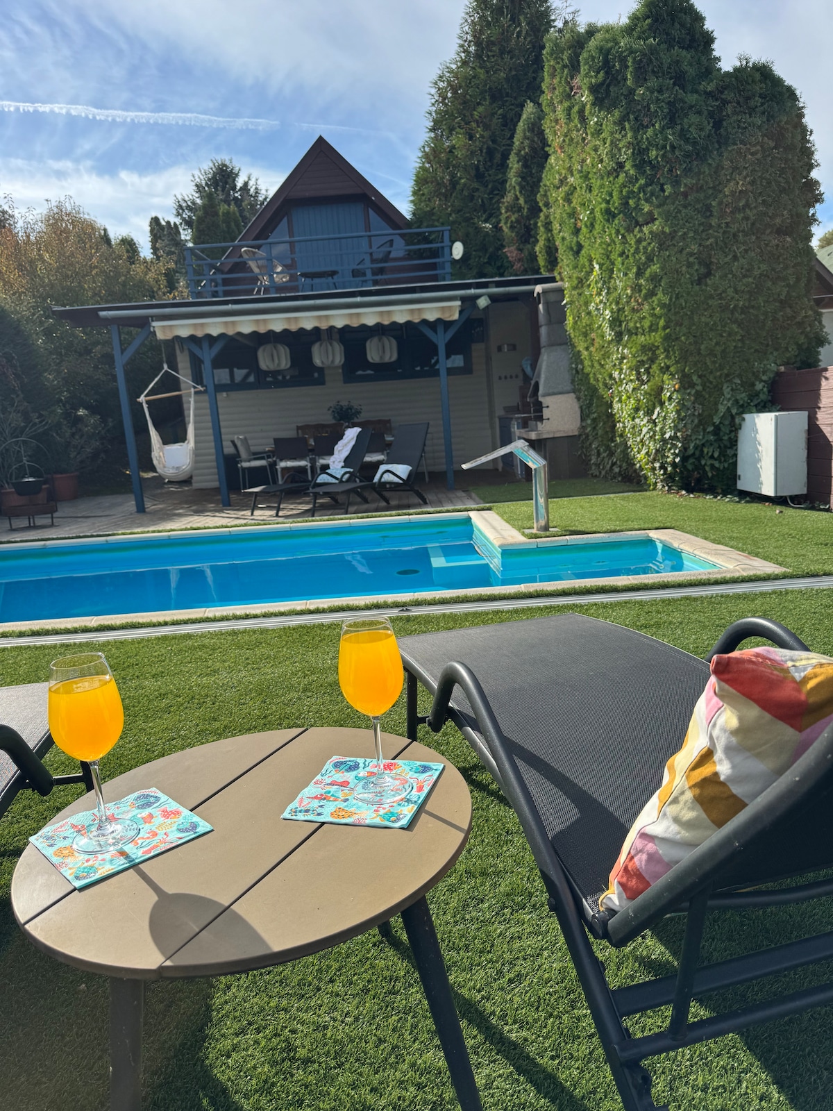Cantos de pájaros, espejo de agua, sauna de infrarrojos y cabina de vapor, enorme jardín con parque infantil, posibilidad de hacer barbacoa... todo a 10 minutos a pie de la orilla del lago Balaton... El apartamento consta de una cocina, un salón y un dormitorio. Tiene capacidad para 2+2 personas. (podemos proporcionar 1 cuna de viaje de forma gratuita).