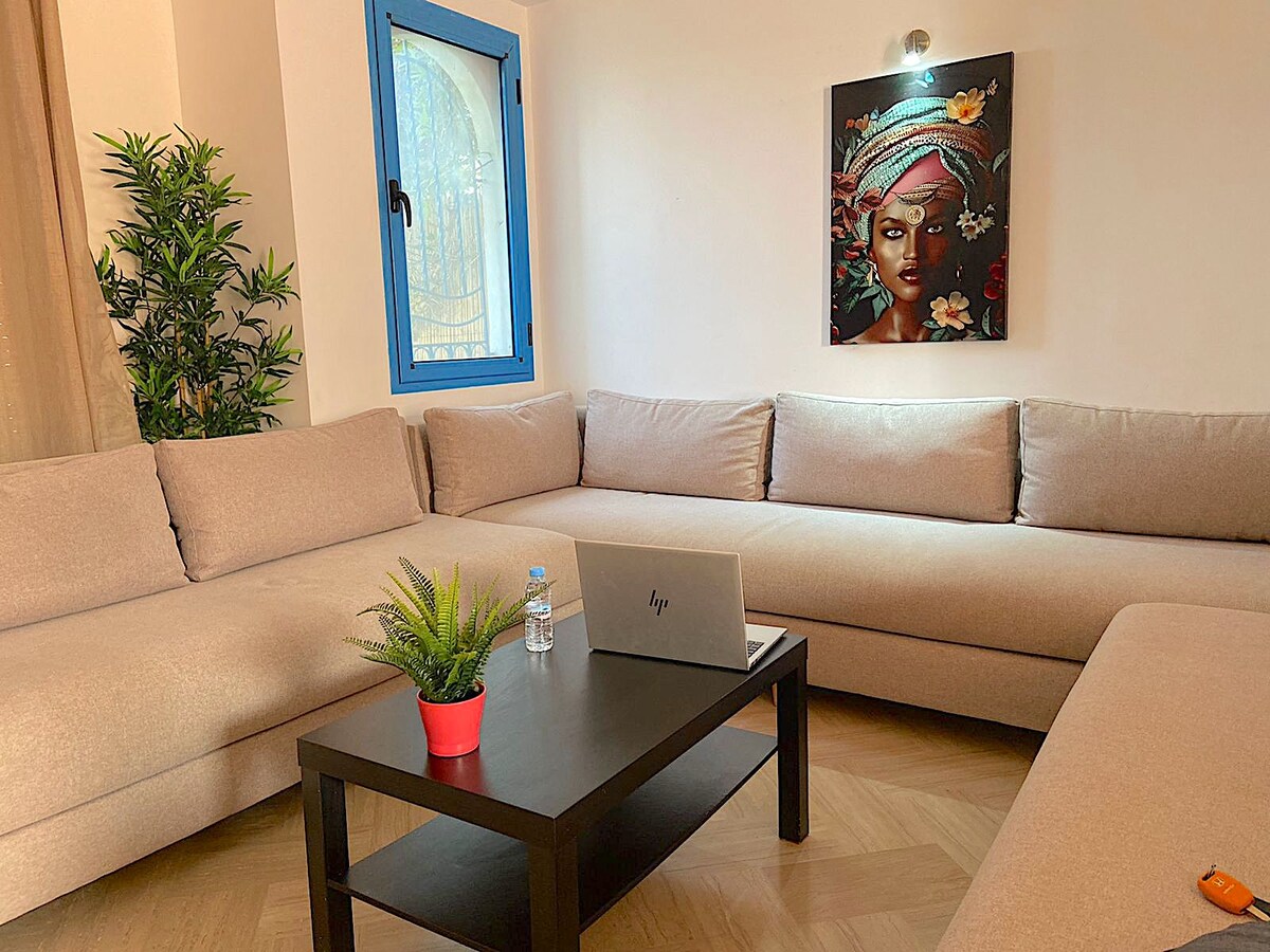 Casa cómoda, lujosa y relajante en Rabat para viajeros que valoran la comodidad, decorado con gusto y atención al detalle en un barrio tranquilo y seguro. Se encuentra justo enfrente del mar, cerca de tiendas y restaurantes. También está a solo 10 minutos caminando de 'Kasbah', 'Old Medina' y la playa de Rabat. Este apartamento es la mejor opción para parejas o amigos que viajan en Rabat. Lo hemos puesto todo para que te sientas en casa durante tu estancia en Rabat. AC + WIFI DE ALTA VELOCIDAD + NETFLIX