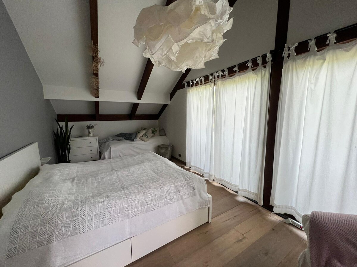 Welcome to my little paradise! An open-plan home available for short stays when I travel or spend time in Riga. It's perfect for 1–3 guests looking for peace, nature, and comfort. Located just 2 km from a quiet beach near Saulkrasti, the house sits on a forest-lined gravel road in a calm residential area. Enjoy your morning coffee on the terrace, surrounded by conifers, hydrangeas, and 80 blooming roses, with only birdsong to disturb you. Visit our local Saturday market to buy natural food.
