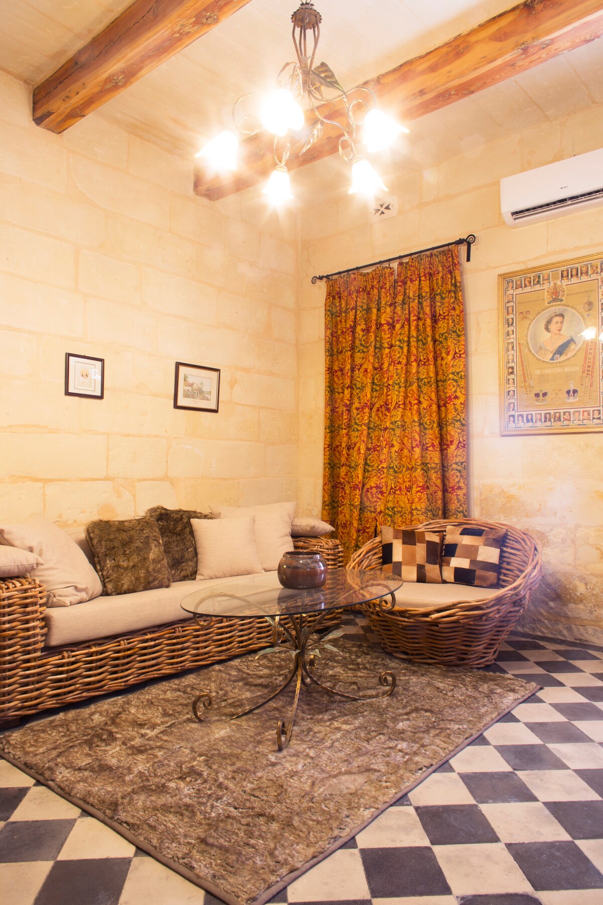 !! All taxes (tourist tax and vat) are included in the price !! (valid for bookings taking place till 30th June 2026) no need to pay extre fees when you come to the flat ! From July 2026 the tourist tax has been increased form 0.5 to 1.5 euros for guest. For any booking taking place after 1st July 2026 an adjustment of 1 euro euros for each guest will be asked here. Enjoy this boutique one-bedroom apartment with stunning sea-views located in the history-steeped town of Senglea within walking distance to Birgu and just 3 (but amazing) minutes ferry to Valletta. The apartment has a variety of original Maltese features and provides an authentic experience. In the hart of the historic Malta, set right at the magnificent waterfront of the oldest of the Three cities (founded by the Knights in 1552), this apartment offers stunning views, authentic historical setting for the sophisticated traveler and all the modern conveniences at a knock-down price! Among the latter we count convenient ferry, bus and water taxi transport links to Valletta and beyond, exquisite restaurant and bar outlets just across the creek, plus the numerous local establishments at hand. The apartment is furnished with a tasteful emphasis on the original Maltese features now rapidly disappearing throughout the island's noisier and busier tourist areas. These features include traditional patterned tiles (to keep the weary traveler's feet cool in the heat), traditional Maltese balcony insightfully converted into a dining room with breath-taking views of the Grand harbour and the cities of Valletta and Vittoriosa (beautiful settings should finally be counted as the necessary condition for healthy eating and living!). Old wooden beams adorn the aristocratic high ceilings, adding a touch of nostalgic grandeur. All this combines to offer an unbeatable travel experience which breaks radically with the standardized mass hotel packages of today's tourist industry. Come and explore a little-known Maltese locality which offers a glimpse into the authentic Maltese life-style; a locality that is distant, yet close enough to the more established sites.The ferry connection to Valletta(4min) across the Grand Harbour is second to no other type of transportation (sometimes the truth of the old worn-out proverb that the journey is more important than the destination holds unconditionally but if you insist on renting a car, there is plenty of parking space also). The apartment comprises a bedroom with a double niche bed, a spacious and elegantly vintage-furnished living room (with a sofa-bed), a dining area, a fully equipped kitchenette (for those who are tired of eating out and want to experiment with local fresh produce at home) and a bathroom (needless to say, also with sea views!). The property is just around 10..15 min taxi from the airport.