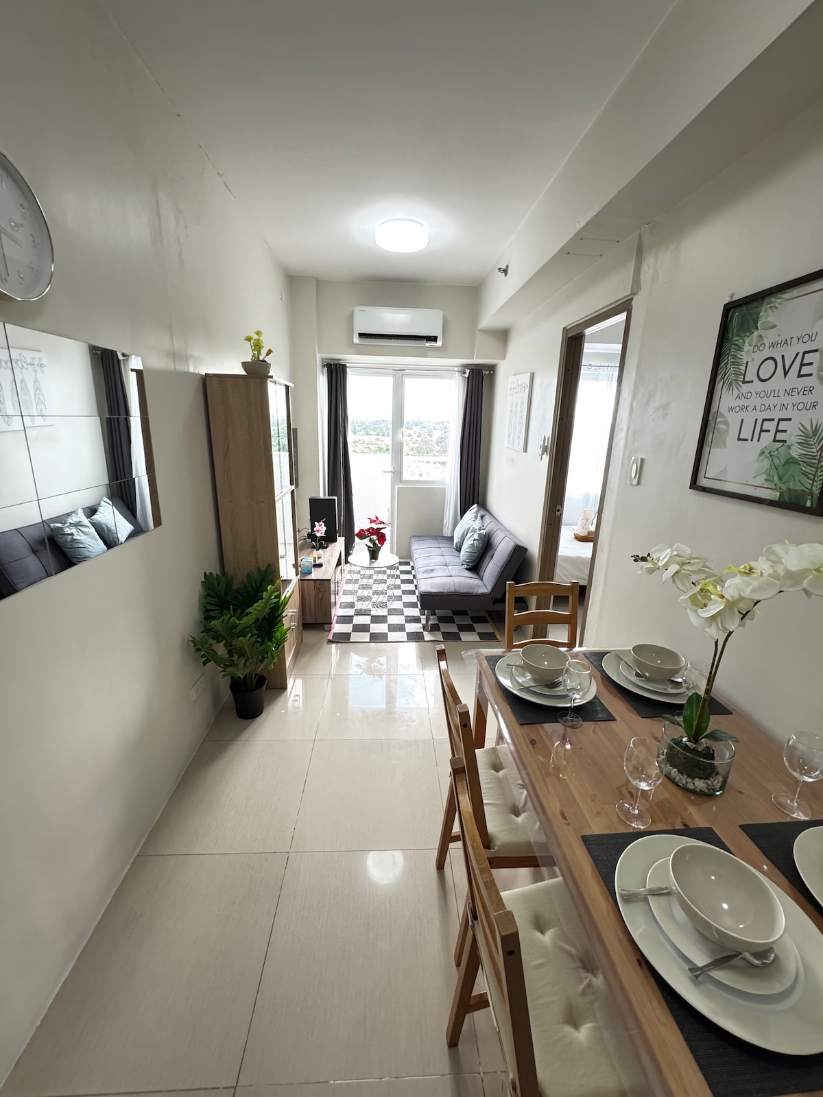 Unidad de concepto inteligente y moderno de 1 dormitorio en el metro sur. MOBILIARIO DE PRIMERA CALIDAD SM Field Residences ✔️Autorregistro de entrada. Cerradura de puerta✔️ automatizada (se proporcionará un código personalizado). Wifi de✔️ 20 mbps (se proporcionará wifi portátil en caso de interrupción) Televisor Android FHD de✔️ 55 pulgadas. ✔️Sofá cama ✔️ Múltiples áreas de almacenamiento. Calentador de✔️ agua ✔️Lavadora. Aparcamiento ✔️cubierto disponible por 250 por noche, sujeto a disponibilidad.