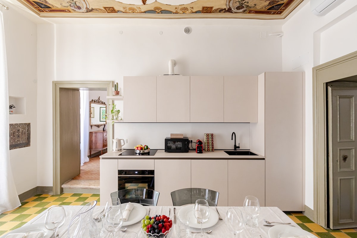 Esplorate il lusso senza tempo nel nostro appartamento affrescato nel cuore di Verona. Questo rifugio offre due camere da letto con bagni privati, un salotto arredato con gusto e una cucina completamente attrezzata. Gli affreschi adornano le pareti, conferendo un tocco di eleganza e storia. L'ambiente è un'armoniosa fusione di raffinatezza e comfort. La posizione centrale vi offre facile accesso alle principali attrazioni di Verona. Godetevi un soggiorno indimenticabile in questa antica dimora.