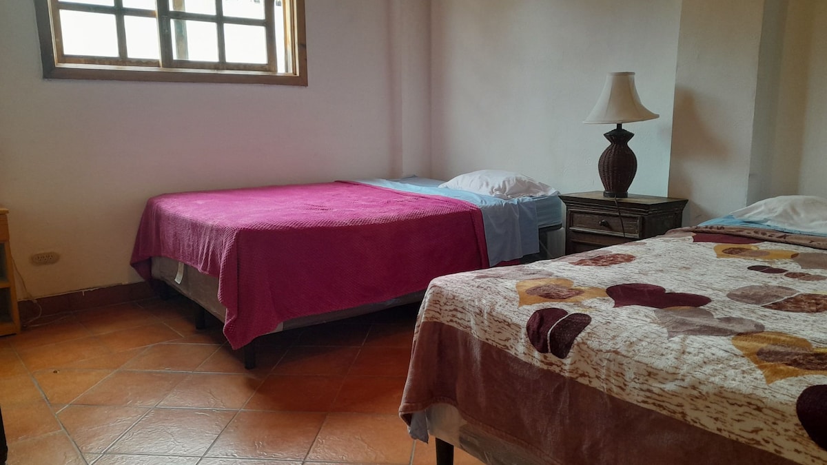 Una de las 8 cómodas habitaciones, ubicadas en el centro de Panajachel, a 5 minutos caminando desde la calle Santander. Rodeado de hermosos jardines, acceso a una piscina adyacente a las habitaciones que también cuenta con un animado bar en la piscina, con música, que está abierto al público durante el día. ¡En el lugar, tenemos una pizzería y deliciosos postres! El hotel y la piscina están reservados para adultos (mayores de 18 años). Sin excepciones.
