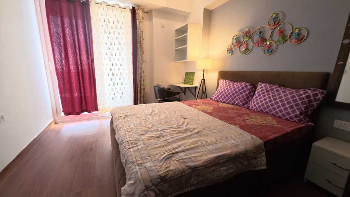 ¡Elegante apartamento urbano en el corazón de Gurgaon! Escápate a este apartamento bellamente diseñado en el Sector 49, que combina el encanto urbano con la comodidad total. Disfruta de una acogedora cama tamaño king, una cocina completa, un baño elegante, un espacio de trabajo con wifi y un balcón privado con vistas a la ciudad. ✦ Ubicación privilegiada A ✔ 20 minutos del aeropuerto IGI y cerca de DLF Cyber Hub, centros comerciales y cafeterías. Registro de entrada✦ autónomo y aparcamiento sin complicaciones ✦ Piscina en la azotea (499 INR por persona, más impuestos) ✦ Ideal para escapadas románticas, viajes en solitario o de empresa.