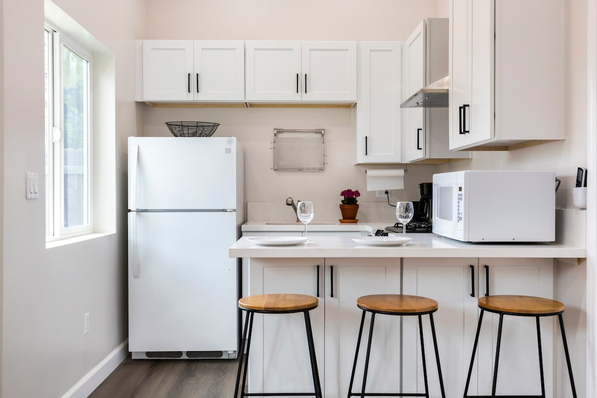¡Te damos la bienvenida a tu acogedor y elegante retiro en Whittier! Este espacio cuidadosamente diseñado combina la comodidad moderna con la comodidad cotidiana, perfecta para viajeros solitarios, parejas o profesionales. 🛏️ El espacio Relájate en un estudio limpio e iluminado por el sol con una cómoda cama tamaño queen, cocina americana totalmente equipada, baño privado, wifi de alta velocidad y TV inteligente. Ya sea que estés aquí para una escapada rápida o una estancia más larga, todo lo que necesitas está aquí.