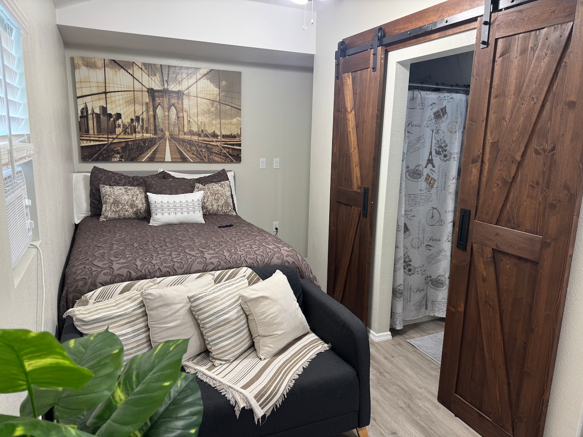 ¡Bienvenido al corazón de Orlando! Ubicado en el centro de todo lo que necesitas para disfrutar de tus vacaciones. Un amplio estudio de 360 pies cuadrados con entrada privada que incluye llegada autónoma, cocina pequeña y área multifuncional para trabajar a distancia. Tiene capacidad para cuatro personas (1 cama tamaño queen y 1 sofá cama). Situado a 10 minutos del aeropuerto internacional de Orlando y a 15-20 minutos de los parques temáticos. Las principales carreteras están a 5 minutos. Ten en cuenta que los sábados de 18:00 a 20:00 horas es posible que escuches música en la casa principal.